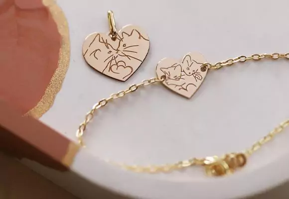 Choisissez le type de bijou, la forme, le caratage et la couleur.