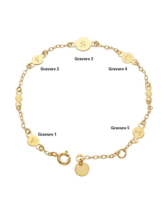Retour Accueil > Bijoux Femme > Bracelets Prénom Femme Or > Bracelet 5 Pampilles Personnalisable en Or