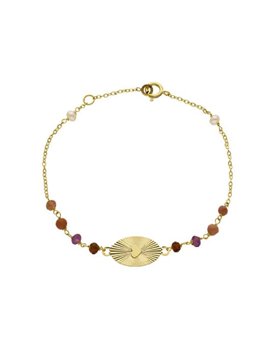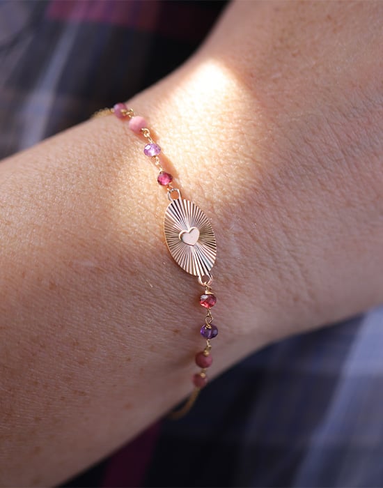 Bracelet Cœur Soleillé en Or Jaune 18K avec Pierres Roses et Violettes Bracelet Cœur Soleillé en Or Jaune 18K avec Pierres Roses et Violettes