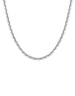 La maille grain de café est plus imposante : chaque maillon ressemble à un petit grain de café doté de deux trous. Plus large, cette chaîne est souvent choisie comme collier seul car elle se suffit à elle-même.