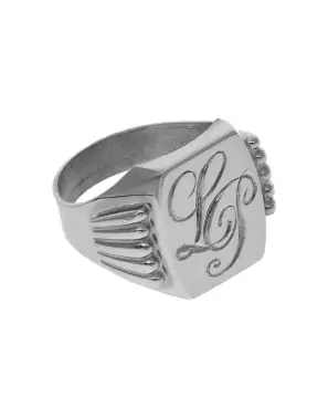 La chevalière homme initiale est très personnelle : elle présente, sur son plateau, les initiales de l’homme qui la porte. Il existe des milliers de combinaisons possibles entre la typographie des lettres choisie et la réalisation des initiales, lettres soudées ou lettres gravées, gravure main ou gravure machine. Le résultat sera très moderne ou très classique, voire vintage.