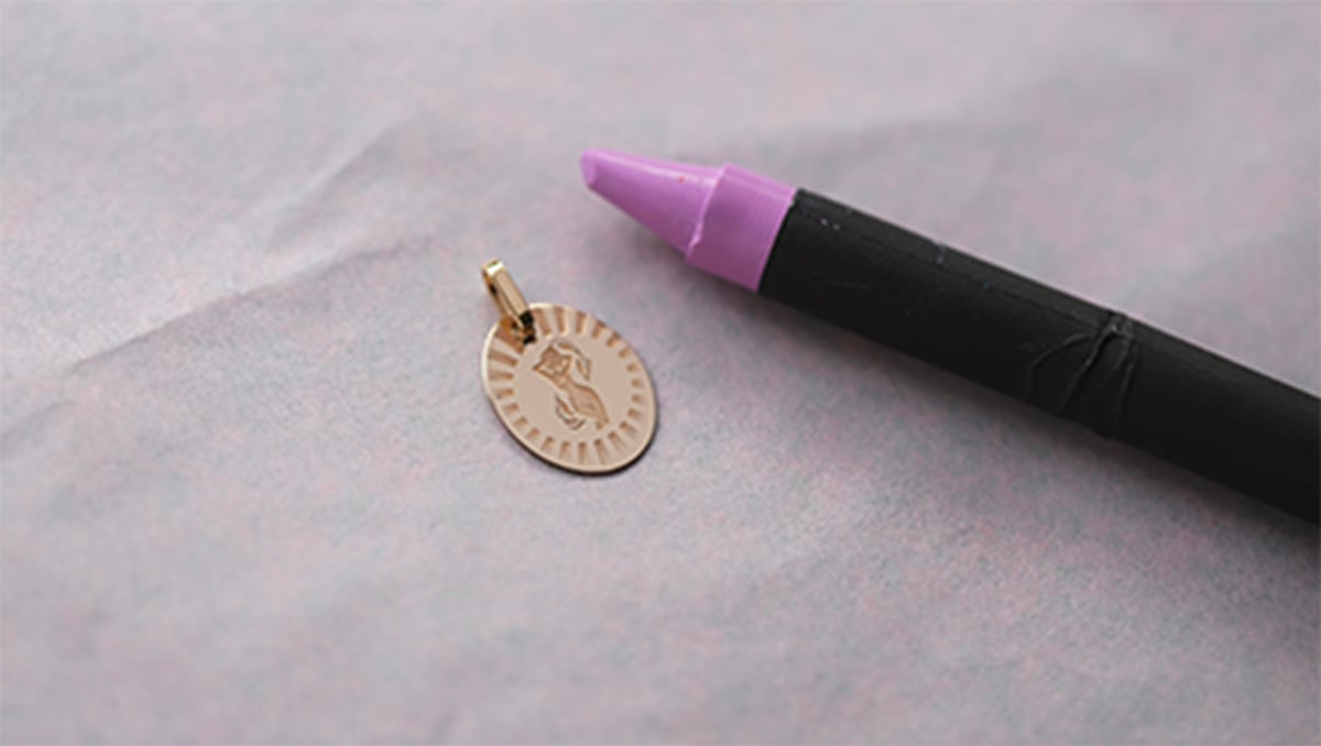 La gravure dessin est une autre manière de personnaliser un bijou avec force et sensibilité. Elle permet de reproduire un dessin d’enfant, une illustration que vous aimez ou un symbole cher à votre cœur. Pour cette personnalisation, notre médaille rectangle en or est particulièrement adaptée grâce à son format de 25 × 15 mm.