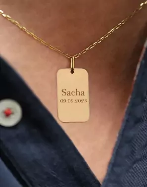 La médaille rectangulaire pour homme : sa forme évoque celle de la plaque militaire. Elle est particulièrement appréciée par ces messieurs car elle permet toutes sortes de personnalisation.